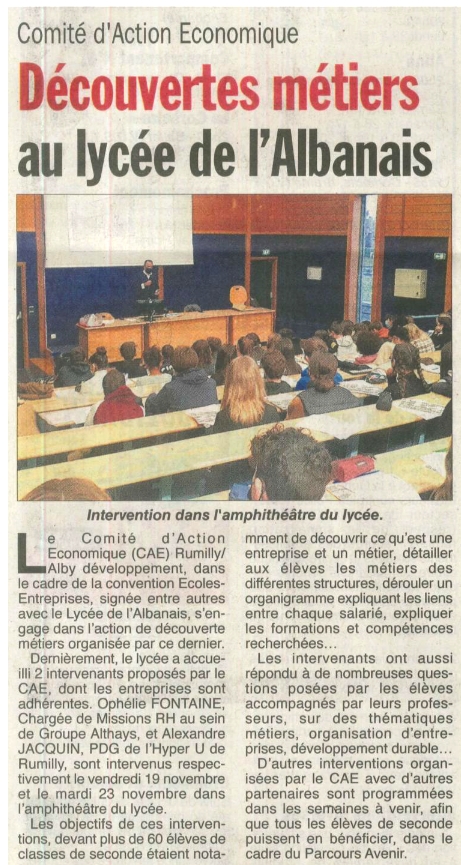 Des professionnels interviennent au lycée de l'Albanais