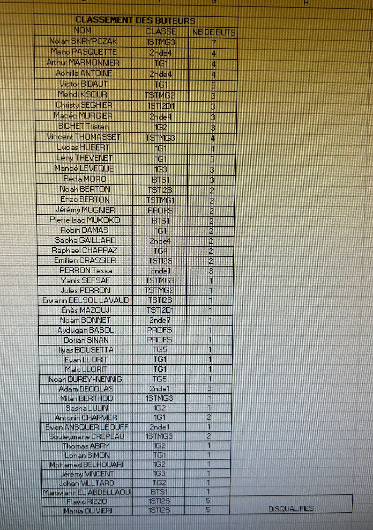 On y retrouvait logiquement (mais pour la première fois) les 3 classes regroupant le plus d'élèves en sections sportives à savoir la seconde 1, la première G1 et la terminale G1. La 1G3 complétait ce dernier carré.