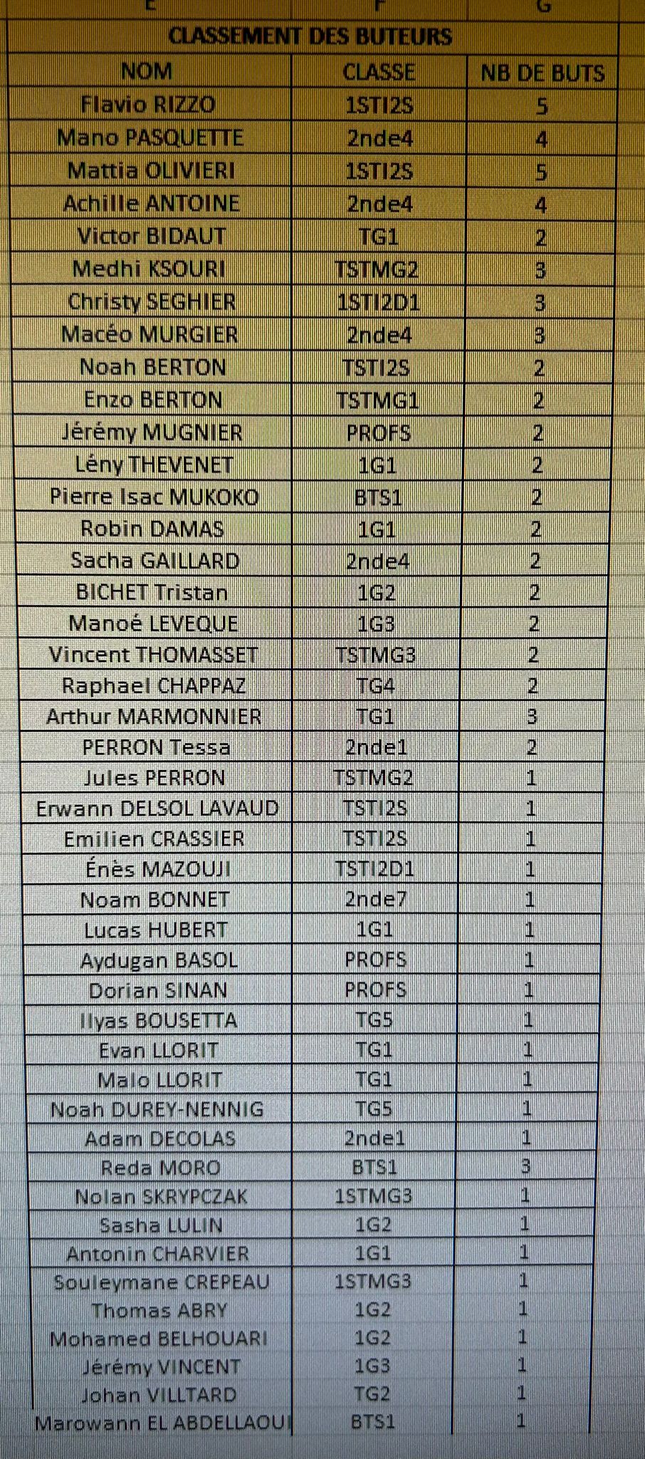 Les secondes finissent par trouver l'ouverture par l'excellente Tessa Perron qui repique vers le centre et ajuste à dix mètres de la cage une belle frappe enroulée du pied droit qui trompe Gilles Bruyère le gardien des Professeurs. Les professeurs tenteront bien de réagir notamment par Jérémy Mugnier mais les 2nde1 ne lâcheront rien et fermeront tous les espaces.
