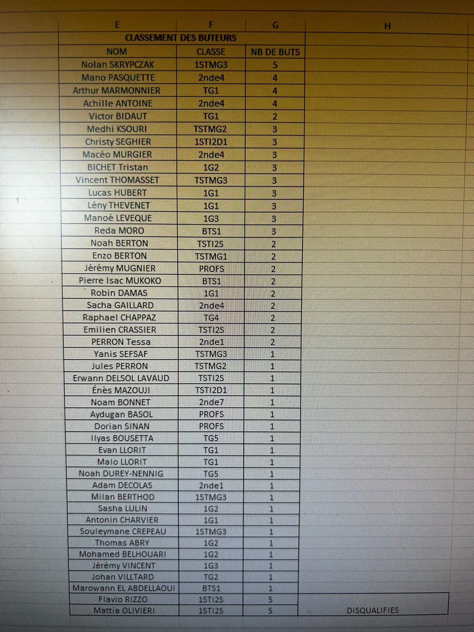 Félicitations aux deux équipes pour l'excellent état d'esprit qui a régné sur le terrain et en particulier aux TSTI2S, auteurs d'un beau parcours. Les 1G3 sont les premiers à entrer dans le dernier carré de ce tournoi. En demi-finale, ils rencontreront le 23 avril le vainqueur du match 1STMG3-2nde 1.